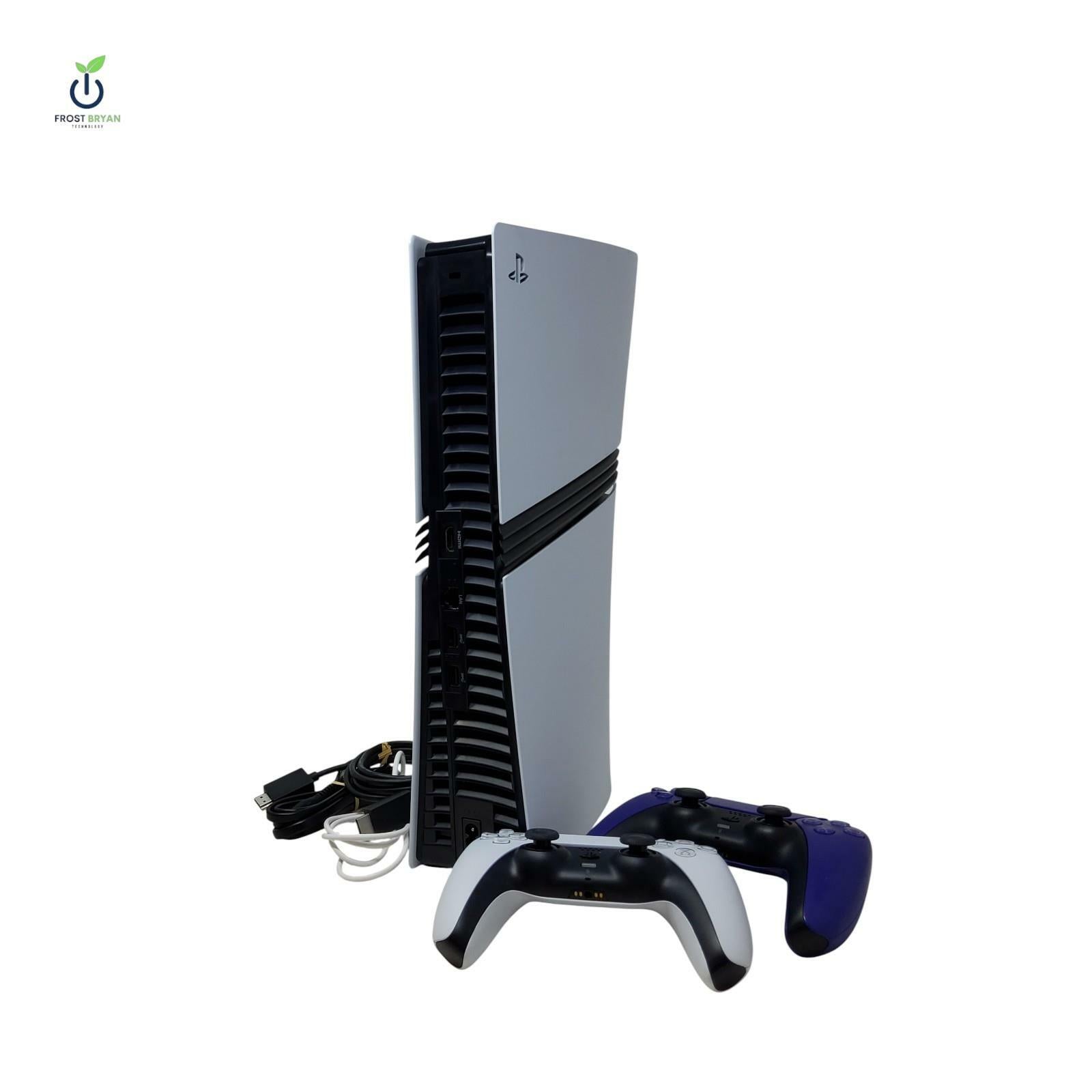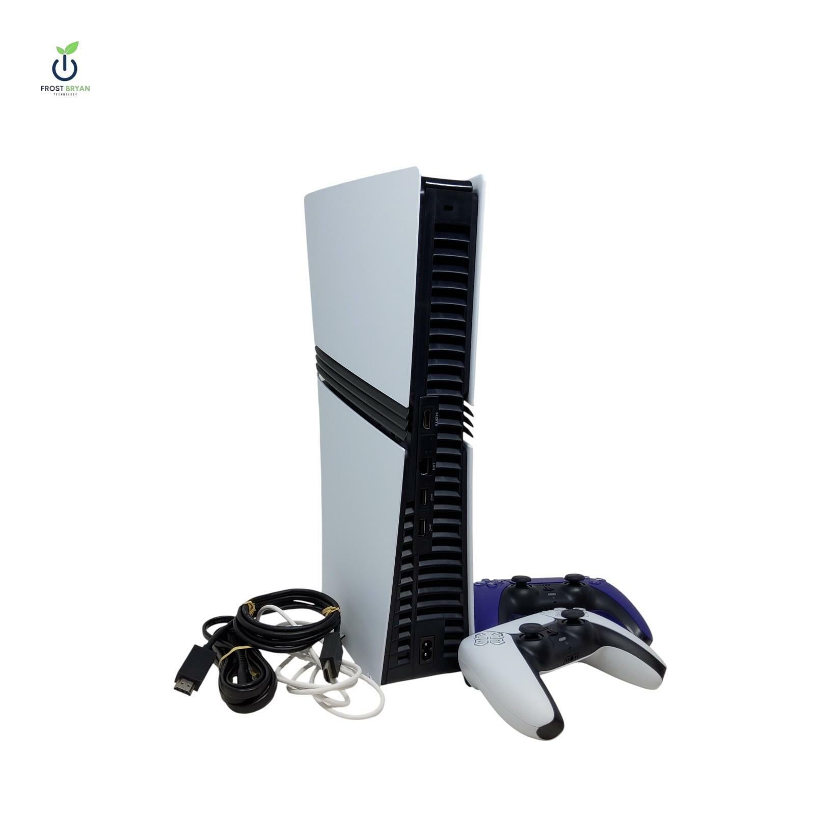 We are offering a very good refurbishedSONY PLAYSTATION 5 PRO DIGITAL PS5 PRO (CFI-7019).Sony PlayStation 5 Pro Digital Edition with upgraded 2TB storage gives you expanded space for large AAA titles, faster load times, and smooth next generation performance. This refurbished console includes HDMI cable, AC power cord, USB C cable, printed materials, and two DualSense wireless controllers so you can start gaming immediately The white controller shows minor wear and the purple controller shows heavier cosmetic wear, while the console itself has minor scratches and scuffs consistent with normal use. Perfect for gamers who want premium PS5 Pro performance at a better value without paying full retail price.
